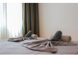 Apartmán Sunset (60 m²) se nachází v jedenáctém patře moderního hotelu v Durrësu a nabízí komfortní ubytování až pro 6 osob.